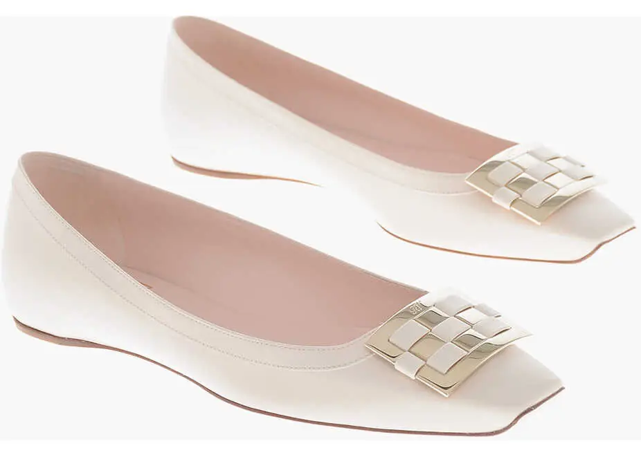 Culoare: White Roger Vivier Leather Ballerinas Trompette With Front Buckle White