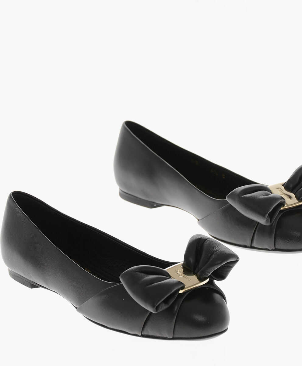 Salvatore Ferragamo Leather Ballet Flats Varina With Front Bow