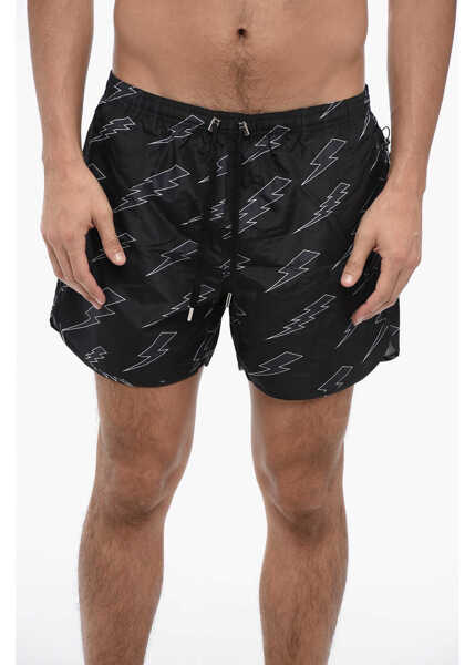 Culoare: Black Neil Barrett Nylon Boxer Rain Bolts Swim Trunks Black