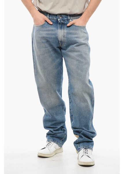 Straight Leg Moto Jeans With Leather Insert 22Cm - Gama variata de modele si culori