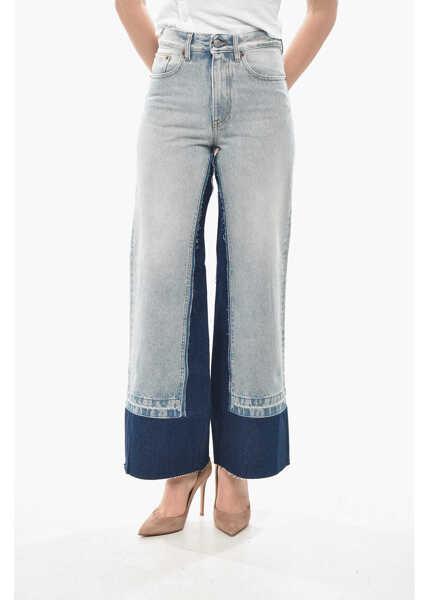 Culoare: Light Blue Maison Margiela Mm6 Two-Tone Jeans With 29Cm Raw Hem Light Blue