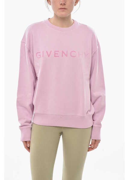Culoare: Pink Givenchy Brushed Cotton Crewneck Sweatshirt With Front Logo Pink