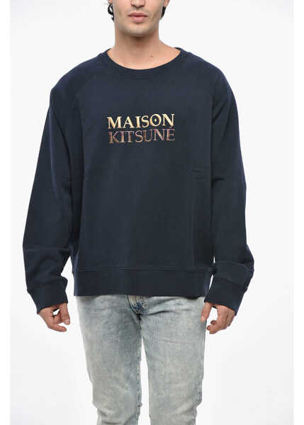 Culoare: Blue MAISON KITSUNÉ Brushed Cotton Crew-Neck Sweatshirt With Embroidered Logo Blue