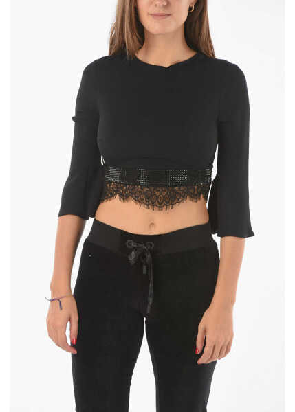 - Calitate la Philipp Plein Couture Lace Detail Cause You Don\'t Think Crop Top pe B-mall!