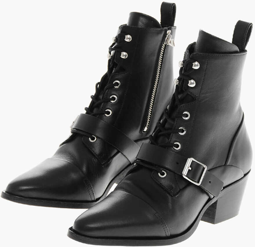 Culoare: Black AllSaints Leather Katy Biker Ankle-Boots Heel 5.5Cm Black