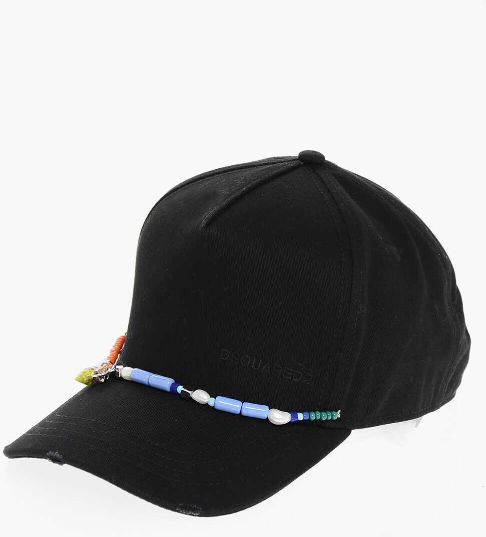 DSQUARED2 Cotton Gabardine Cap Embellished With Beads