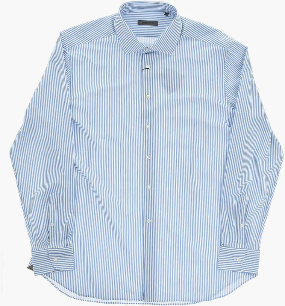 Culoare: Blue CORNELIANI Two-Tone Striped Shirt With French Collar Blue