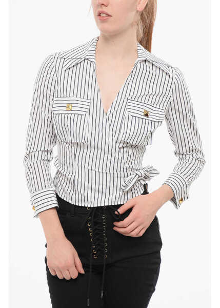 Elisabetta Franchi Hairline Cotton Wrap Shirt
