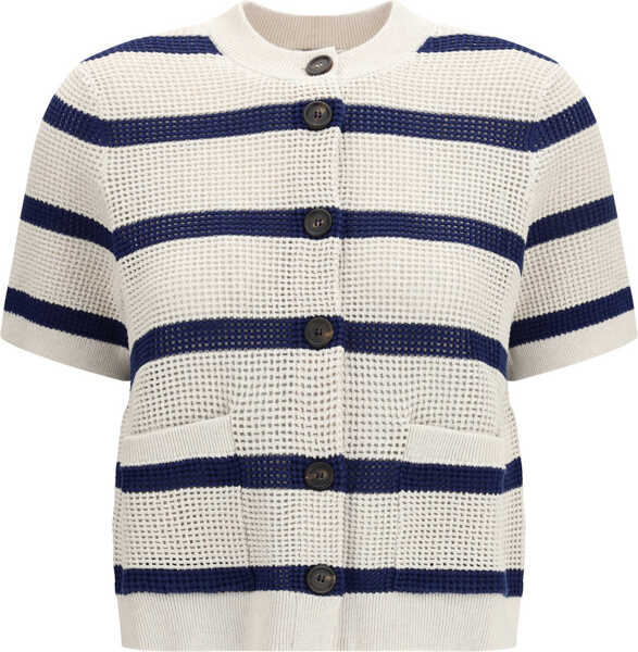 Culoare: AVENA+ZAFFIRO Brunello Cucinelli Striped mesh Cardigan AVENA+ZAFFIRO
