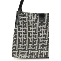 BalmainJacquard and leather Tote Bag