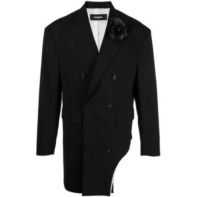 DSQUARED2Virgin Wool Raw Cut Peak Lapel Double-Breasted Blazer