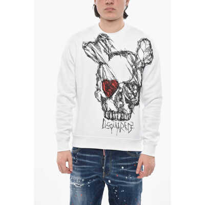 DSQUARED2Cotton Fleece Crewneck Sweatshirt With Large Front Print