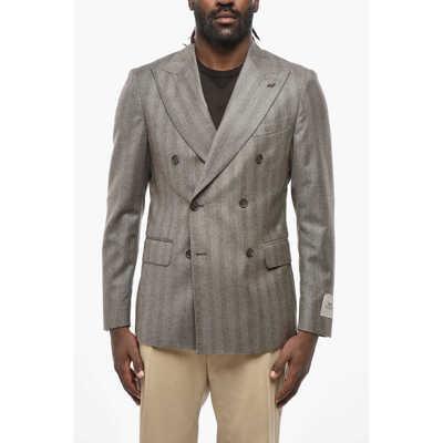 CORNELIANICc Collection Double-Breasted Herringbone Wool Blazer