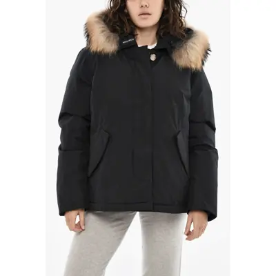 WoolrichSolid Color Down Jacket With Fur On Hood