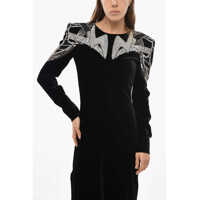 BalmainLong Sleeved Sequined Mini Dress With Golden Chain