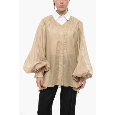 The LatestMixed Cotton Shirt Biro With Balloon Sleeves