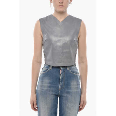 DSQUARED2Maxi Denim Skirt With Metallic-Leather Patches