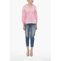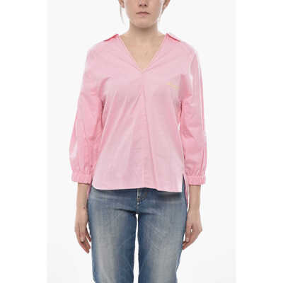 MarniPoplin Blouse With V-Neck And Embroidered Logo