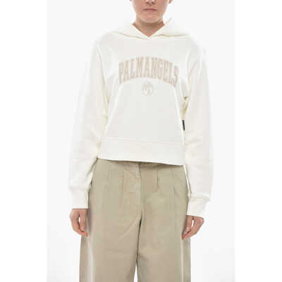 Palm AngelsHooded Sweatshirt Curved Logo, Cotton With Crystals