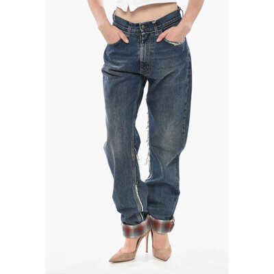 Maison MargielaMm0 Dark-Wash Jeans Pendleton With Patterned Turn-Ups 19Cm