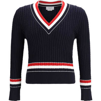 Thom BrowneIntarsia cable-knit V-neck Sweater
