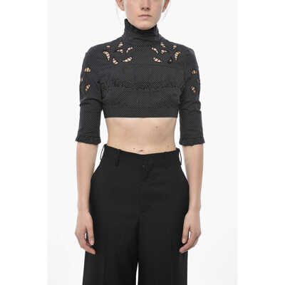 DSQUARED2Cotton Poplin Polka-Dot Crop Top With 3/4 Sleeves And Cut-Ou
