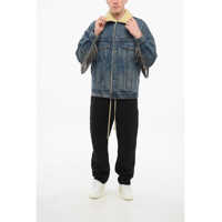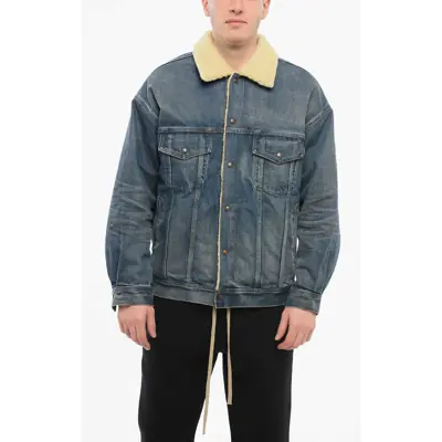 CélineShearling Lined Denim Jacket With Rhinestoned Fringes