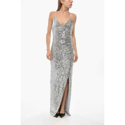 BalmainSequined Maxi Dress With Split And Paghetti Strap