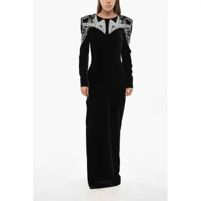 BalmainMaxi Velour Dress With Jewels And Open Back