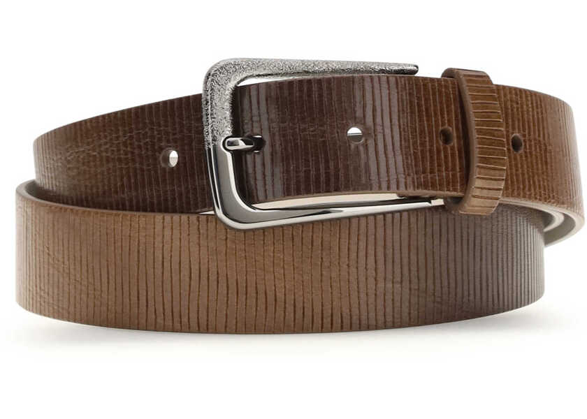 Culoare: TUNDRA Brunello Cucinelli Carved leather Belt with Shimmering Buckle TUNDRA