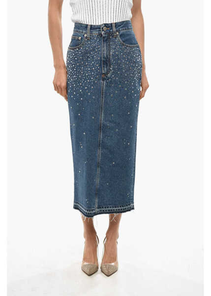 Alessandra Rich Denim Pencil Dress With Rhinestones