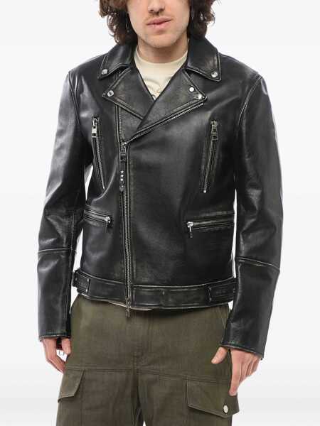 Vintage Effect Leather Biker Jacket - Descriere