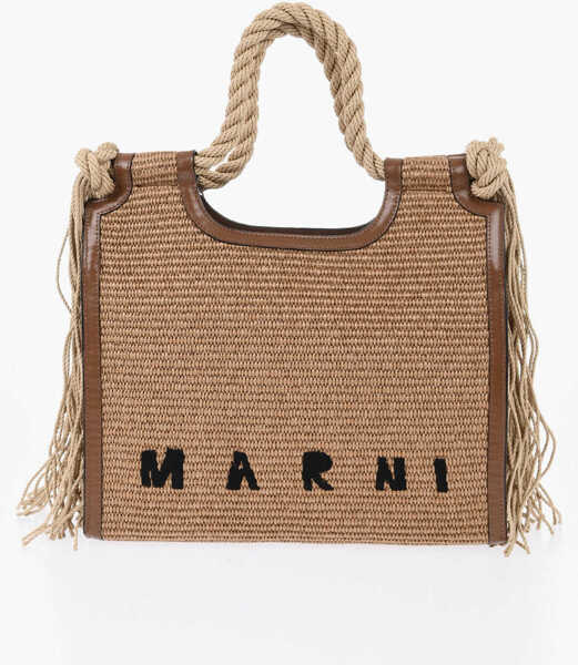 Genti Marni Raffia Handbag With Fringes And Leather Details Femei