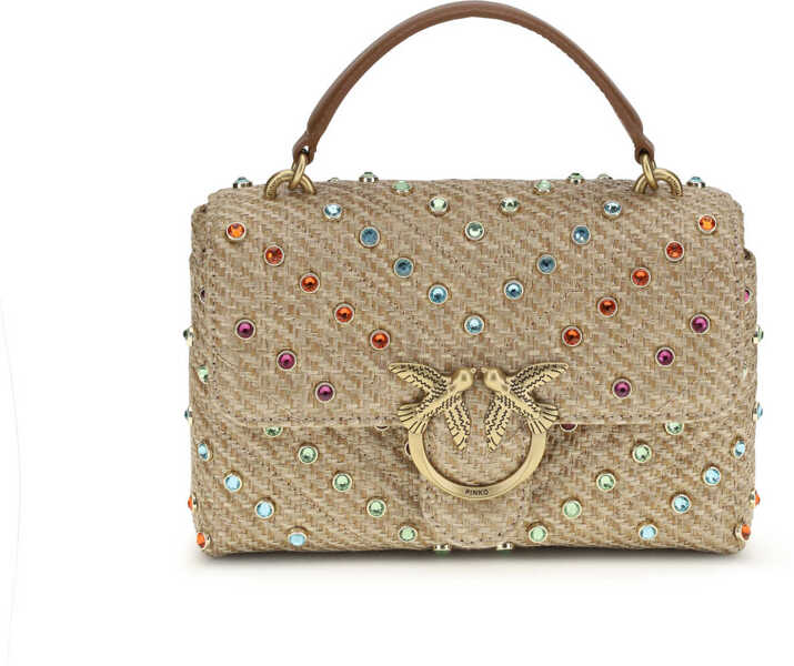Culoare: BEIGE-GRIGIO FUMO-ANTIQUE GOLD Pinko Love Lady Puff Mini raffia Handbag BEIGE-GRIGIO FUMO-ANTIQUE GOLD