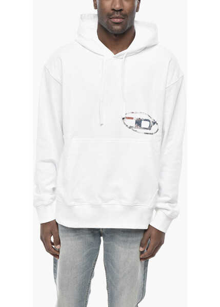Culoare: White Diesel Cotton Hoodie S-Macs With Monogram White