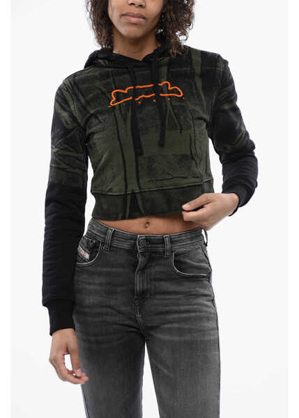Diesel Red Tag Brushed Cotton F-Slimmy Cropped Hoodie With Flocked