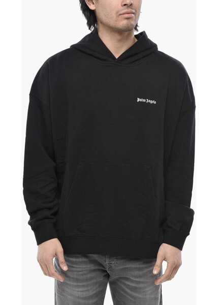 Culoare: Black Palm Angels Brushed Cotton Hoodie Classic Logo With Front Pocket Black