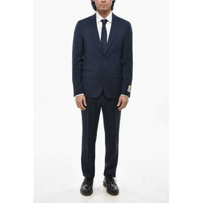 CORNELIANICc Collection Virgin Wool Side Vents Peak Lapel 2-Button Sui