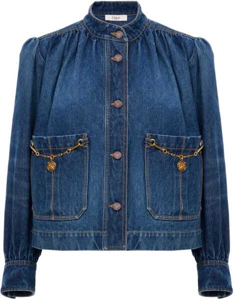 - Calitate la Chloe Denim High Neck Gathered Jacket pe B-mall!