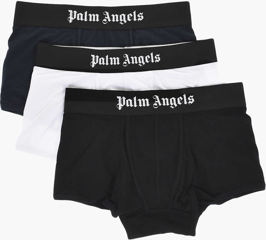 Palm Angels Set Of 3 Stretch Cotton Boxer Briefs With Branded Elastic Wa