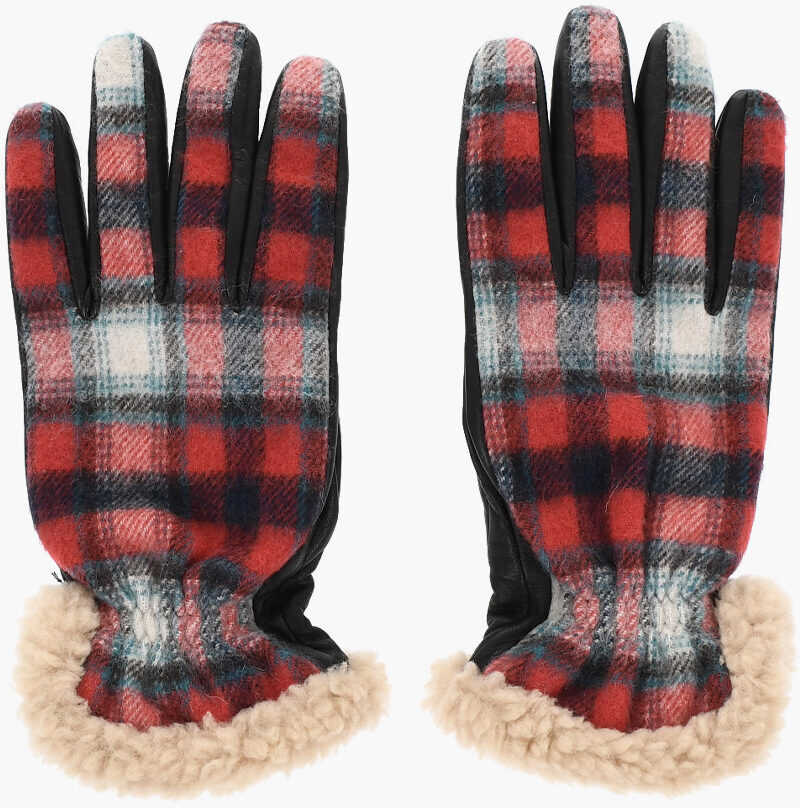 DSQUARED2 Leather And Checked Fabric Gloves