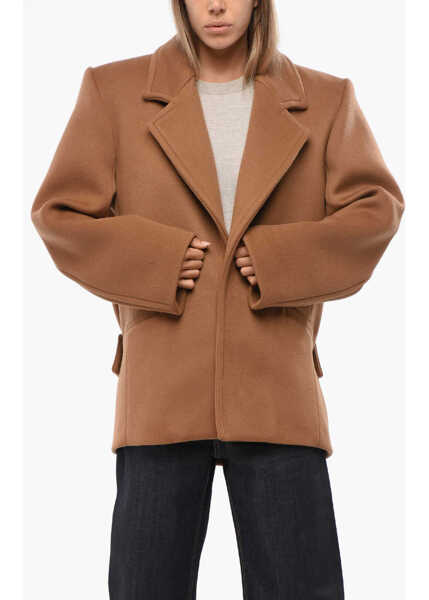 Culoare: Brown Saint Laurent Wool Coat With Martingale Brown