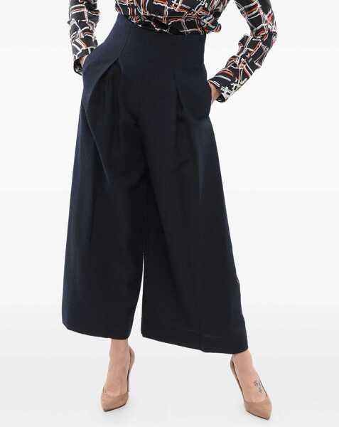 Culoare: Blue Armani Emporio Embroidered Wide-Leg Pants Blue