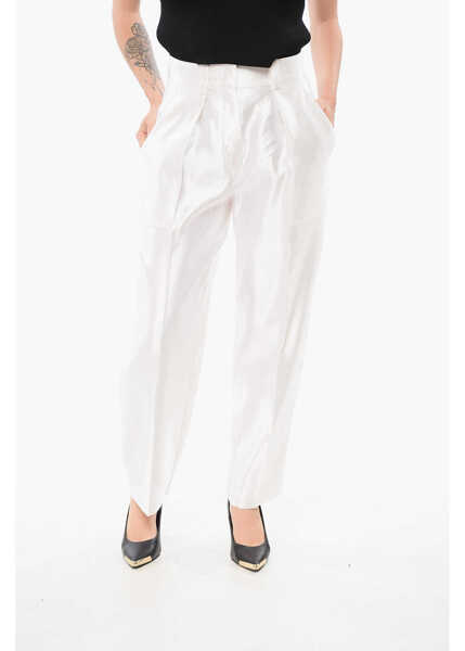 Linen And Silk Blended Pants With Pleats - Descriere