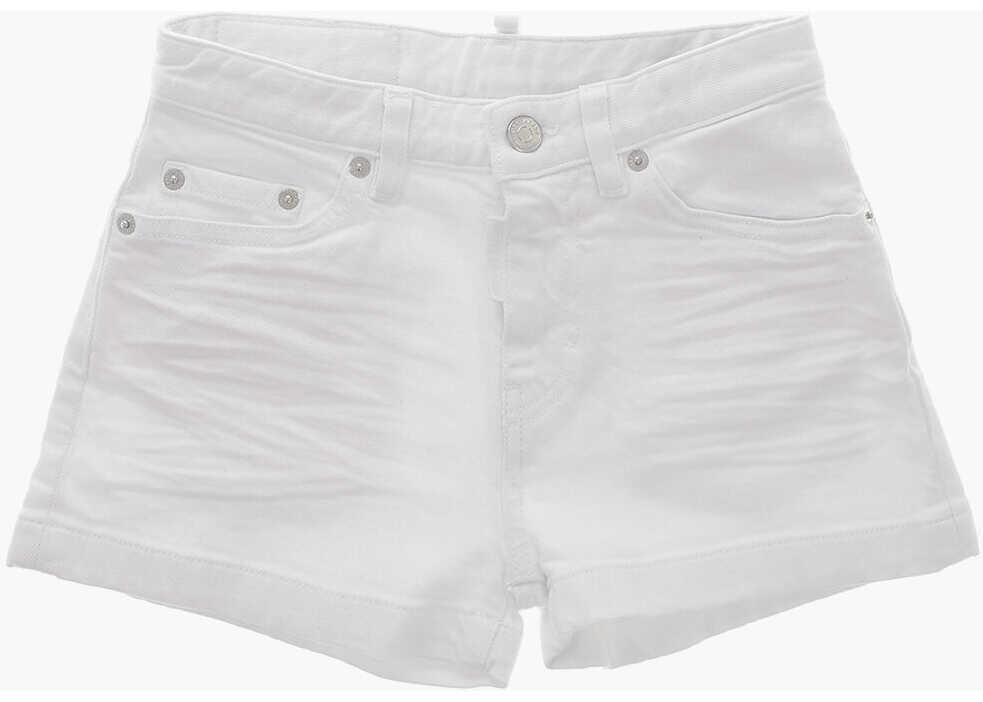 Culoare: White DSQUARED2 White Bull Light Wash Shorts With Logo Button White