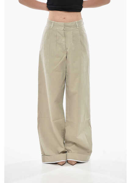 Culoare: Beige Palm Angels Cotton Pants Gd Label With Two Pleats And Turn-Up Hem Beige