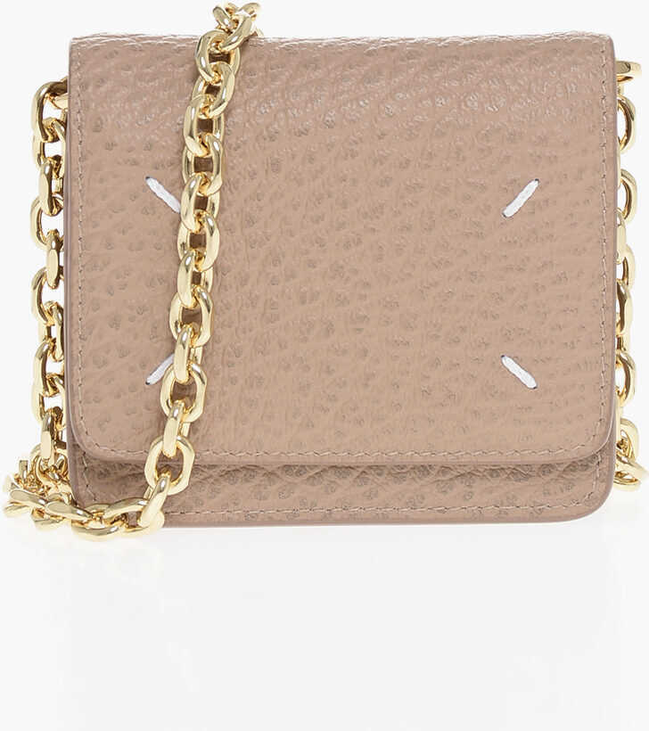 Maison Margiela Mm11 Textured Leather Wallet With Chain Shoulder Strap
