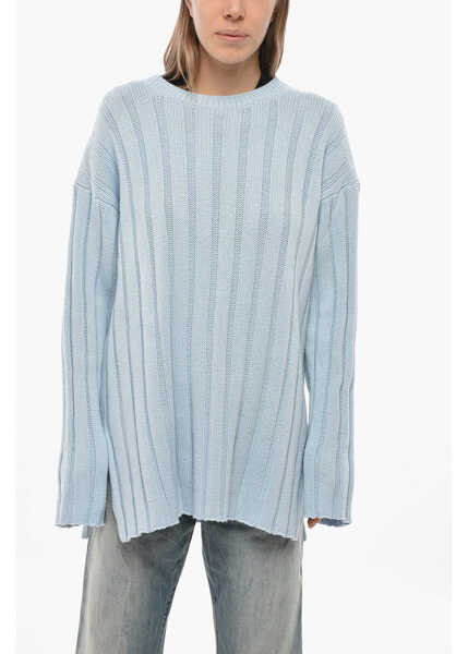 Culoare: Light Blue Allude Crew Neck Ribbed Cashmere Blend Sweater Light Blue