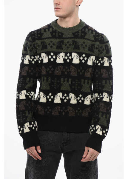 Embroidered Wool Chess Crewneck Sweater - Descriere
