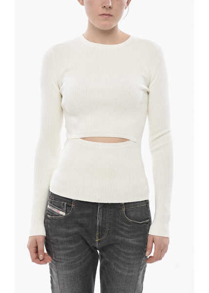 Culoare: White Diesel Ribbed Crewneck Top M-Peris With Cut-Out Detail White